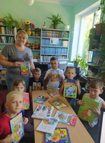Це було перше знайомство з бібліотекою, під час якого діти ознайомилися з дитячими книгами, переглянули мультфільм "Від слова - до книги " та розфарбували мега- розмальовку "Шкільна бібліотека".